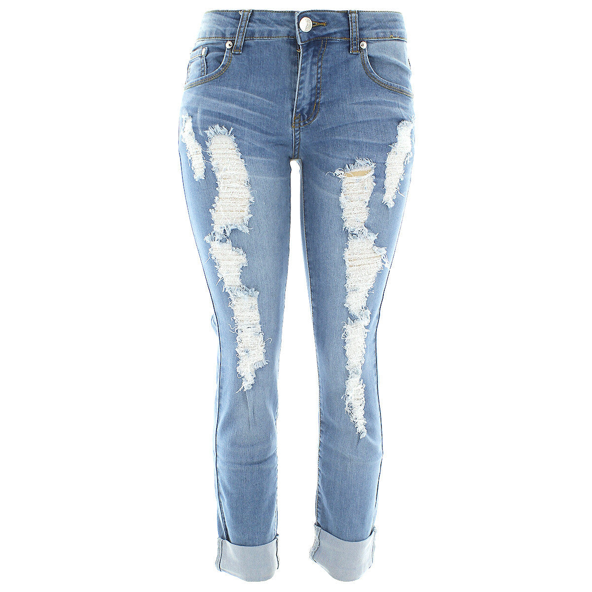 Women's Skinny Ripped Cuffed Boyfriend Jeans