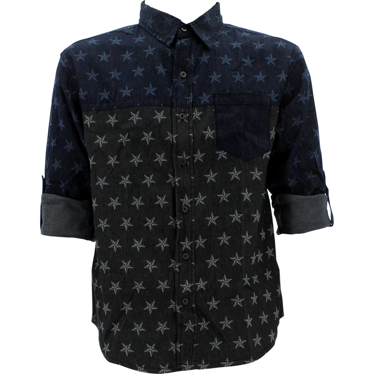 Men's Cut N Sew With All Over Stars Denim Shirts