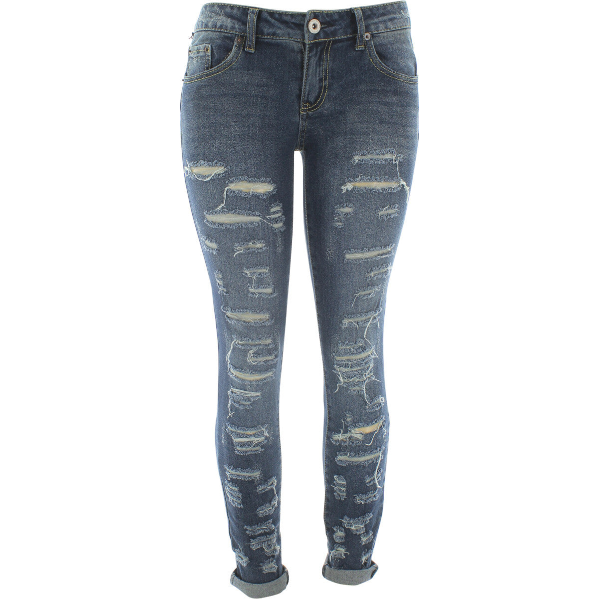 Women's Skinny Ripped All Over Cuffed Jeans