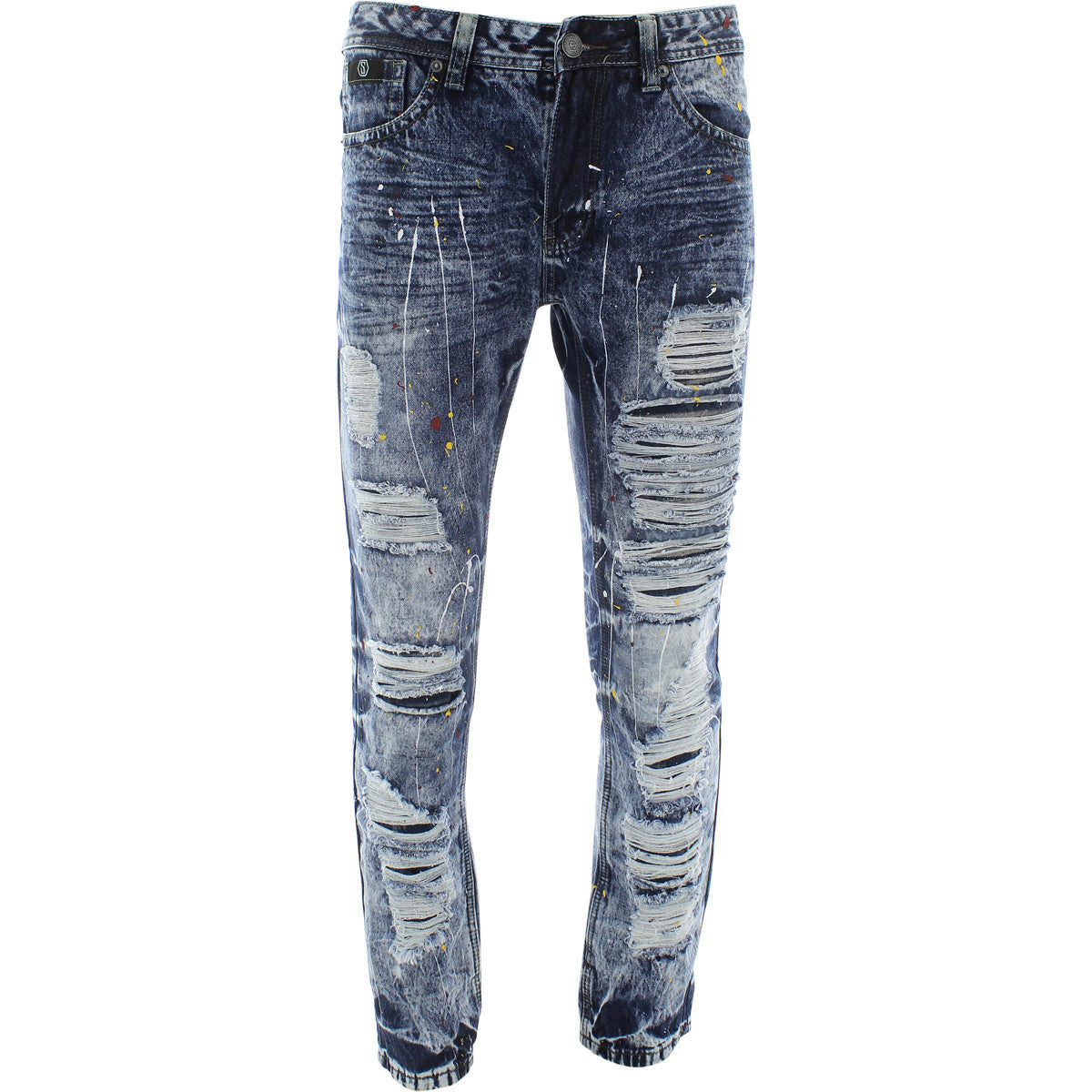 Men's Slim Ripped Paint Splatter Acid Wash Jeans